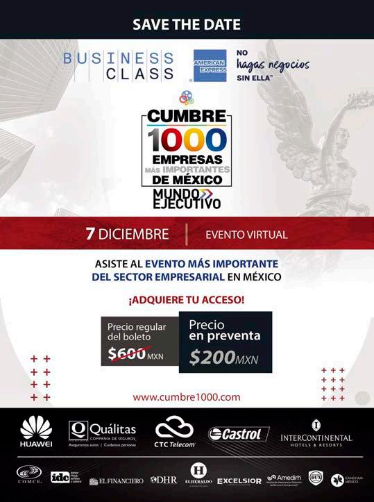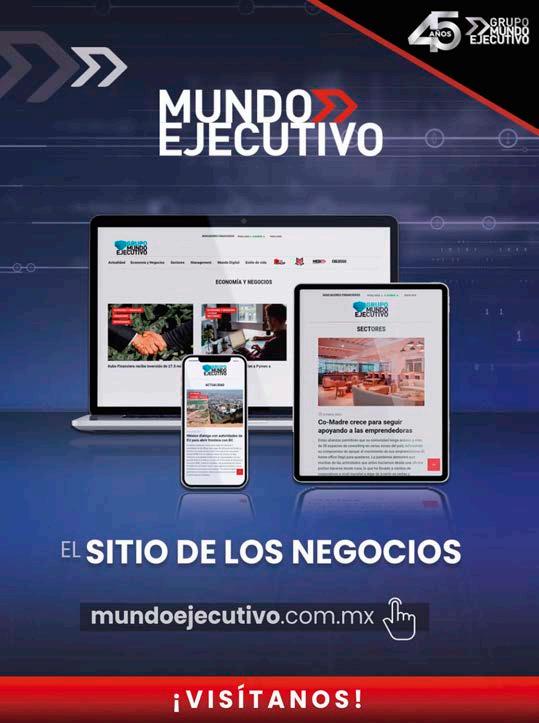• Agosto de 2021. Es una publicación mensual de Grupo Mundo Ejecutivo®; Editada y publicada por: Comercializadora Mundo Rewards S.A. de C.V., Oficinas Generales: Río Nazas No. 34 Planta Baja, Col. Cuauhtémoc, C.P. 06500, Alcaldía Cuauhtémoc. México, CDMX. Teléfono: 55 5002-9500. www.mundoejecutivo.com.mx Editor Responsable: Rosa Arlenne Muñoz Vilchis. Certificado de Reserva de Derechos al Uso Exclusivo número 04-2010-041612575700101. Certificado de Licitud de Título y Contenido 14925. Se imprime en los Talleres de CICSA con dirección en Avenida México Coyoacán num.40 Col. Santa Cruz Atoyac, Alcaldía Benito Juárez. C.P. 03310 CDMX, Tel. 55 56287878 ext.1741. Los artículos firmados son responsabilidad de sus autores y no reflejan necesariamente el punto de vista del Editor de la publicación o de Grupo Mundo Ejecutivo®.Queda estrictamente prohibida la reproducción total o parcial de los contenidos e imágenes de la publicación sin previa autorización de Comercializadora Mundo Rewards S.A. de C.V. ©.Comercializadora Mundo Rewards S.A. de C.V. investiga sobre la seriedad de sus anunciantes, pero no se responsabiliza con las ofertas relacionadas por los mismos.