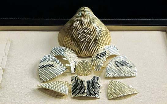 Cubrebocas hecho de oro de 18 quilates y con más d 3 mil 600 diamantes