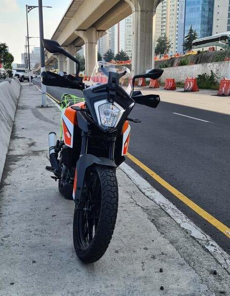 La Adventure 250 es la entrada a la familia de motocicletas doble propósito de la firma austriaca. Su estilo es inconfundible y muy atractivo, la posición de manejo es erguida por lo que no resulta cansada. Por talla es y peso resulta ideal para quienes desean incursionar al mundo del motociclismo. Es ligera resistente y segura, perfecta para aventurarse en la jungla de asfalto y realizar trayectos en carretera no muy prolongados. Su gran recorrido de suspensión la hace ideal para sortear las maltratadas calles de México y brechas ligeras. Su motor de 250 cc posee una justa entrega de potencia y torque, no se caracteriza por su gran poder, por eso, sólo la recomiendo para su uso en ciudad o campo, así como trayectos cortos en carretera. Es capaz de llegar a donde sea, pero a un ritmo moderado. Son 30 caballos y 24 Nm de torque, los que entrega la Adventure 250. Más que suficientes para garantizar un buen desempeño.