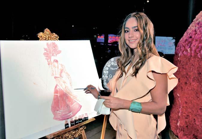 En la celebración, la artista Ana Lucía Tejeda mostró su talento al pintar el cuadro “El Pase de las Flores” en el que utilizó vino tinto para realizar los trazos, con los que sorprendió a los asistentes por su técnica, y compartió que para ella la pintura es su vida.