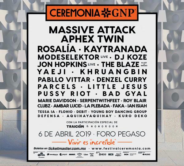 El Festival Ceremonia 2019 regresa con lo mejor de la música, gracias a destacadas bandas internacionales. Entre los grupos que se presentarán están Massive Atack, Aphex Twin, Rosalía, Modeselektor, Parcels, Kaytranada y más, así que ve preparando tu outfit favorito porque no te lo puedes perder.