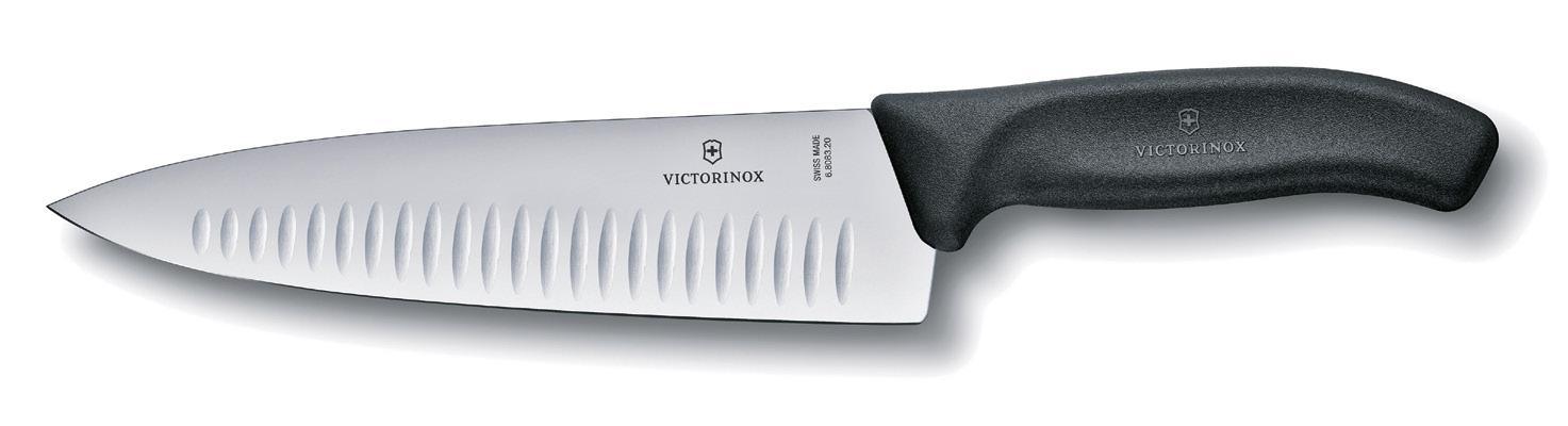 El cuchillo de Chef Victorinox, es sin duda el mejor que se puede tener en la cocina, pues sus mangos ergonómicos y diseño equilibrado, permite cortar con precisión y rapidez cualquier alimento, ya sea fruta, verdura o carne. Este cuchillo es el ideal para superar cualquier desafío en la tabla de corte. Tiene una hoja de acero inoxidable X50 CrMo de acero alemán de primera calidad y está disponible en filo recto con y sin alveólos.