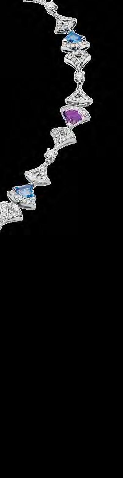 con seis aquamarinas, seis amatistas y un zafiro azul de 3.53 quilates rodeado de 9 brillantes corte diamante y diamantes de 10.82 quilates. Bulgari