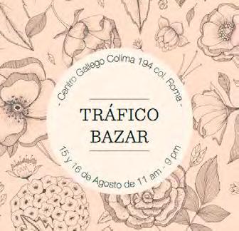 Tráfico Bazar llega a la colonia Roma el 20 y 21 de agosto con nuevos productos de diseñadores cien por ciento mexicanos, ideales para cualquier persona que desee adquirir algo único e innovador. En el lugar podrás encontrar accesorios como collares y anillos y hasta comida artesanal. Entrada libre.