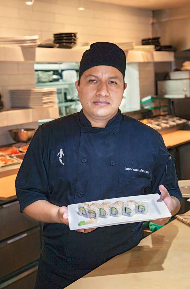 La preparación y la presentación de los platillos distinguen el sello de la casa, coordinados directamente por el chef quien, en las horas de mayor carga laboral, prepara rollos que más gustan a los comensales.