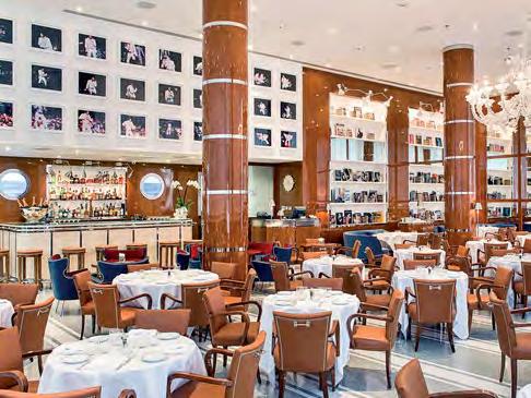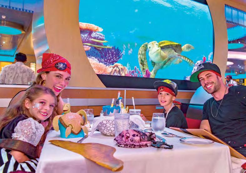 El barco ofrece una gran variedad de opciones para comer y restaurantes temáticos, además de servicio a la habitación las 24 horas sin costo adicional y bebidas, café y té disponibles en todo momento en la cubierta.
