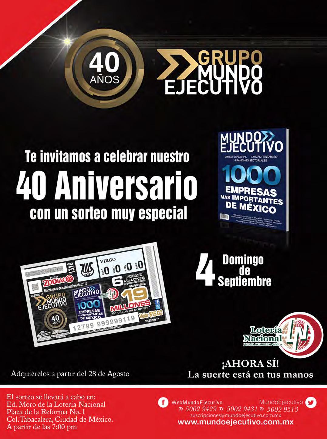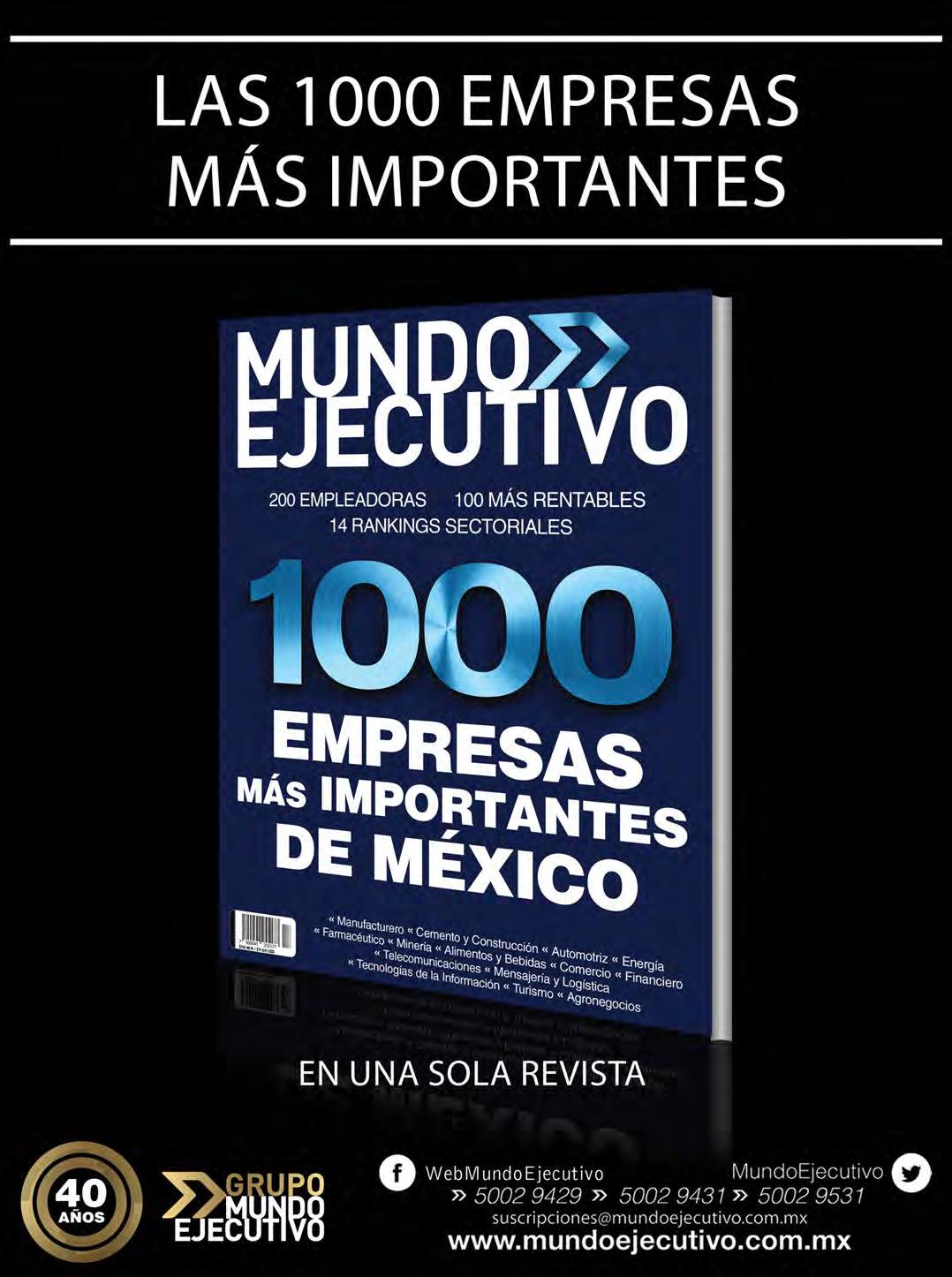 Responsable de suscripciones: Irma Ruiz Irma.ruiz@mundoejecutivo.com.mx Tel: 5002 9429