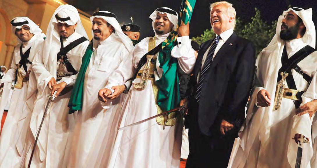 claro que cualquier otra consideración permanece en segundo plano. De hecho, la frase “derechos humanos” no ha sido mencionada en ninguno de sus discursos hasta ahora. Mientras el secretario de Comercio, Wilbur Ross, comentaba admirado la “falta de protestas” en las calles de Riyadh durante la visita de Trump (alguien tuvo que explicarle lo que sucede ahí con la libertad de expresión), el Presidente disfrutaba de una recepción digna de “Las mil y una noches” y participaba en una