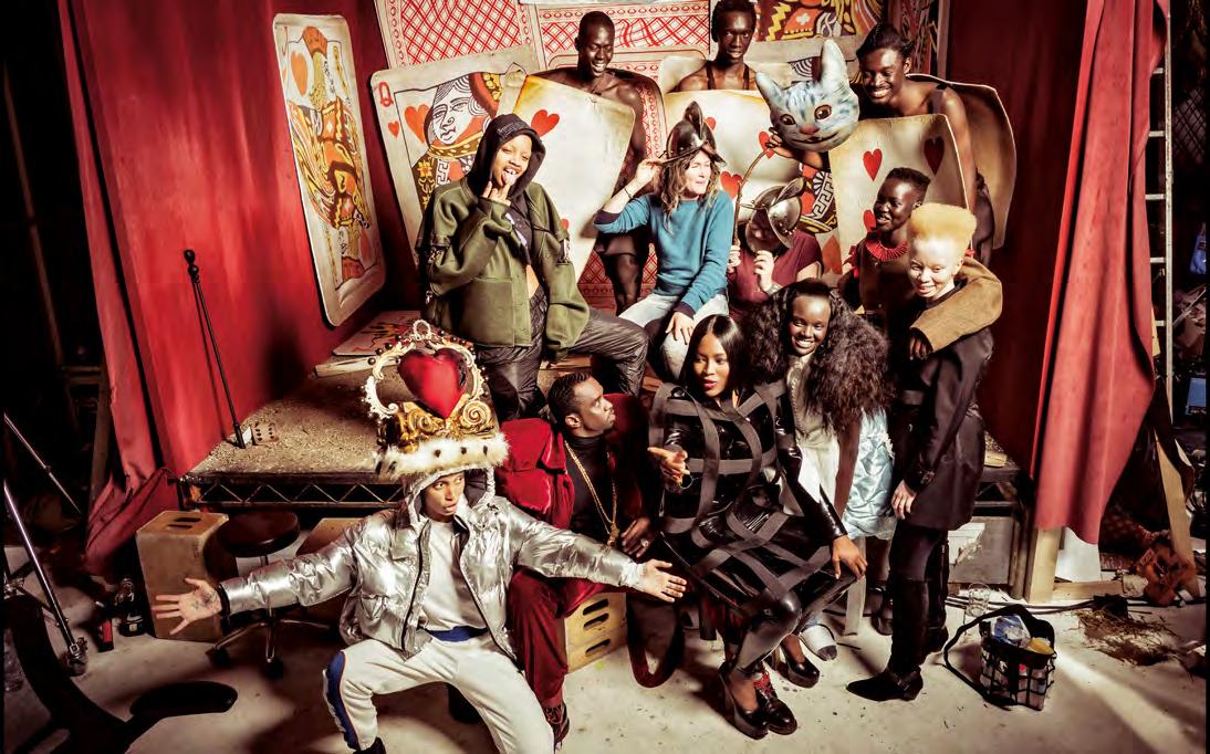 Trabajando con el fotógrafo Tim Walker, célebre por las mágicas escenas de moda que ha creado para W y Vogue, entre otras publicaciones (sus fotografías de Tilda Swinton como un personaje extraterrestre se han convertido en culto), y bajo la supervisión de Edward Enninful, actual editor del Vogue británico, la legendaria marca de neumáticos italiana presenta en esta ocasión una ensoñadora versión de “Alicia en el País de las Maravillas” con un elenco exclusivamente negro. Alicia es interpretada por Dickie Hot, una modelo sudanesa-australiana de 21 años que comenzó su carrera hace apenas un año y que, con justa razón, ha dicho que con esta oportunidad está viviendo su propio cuento de hadas. Otras dos modelos, Slick Woods y Adwoa Aboah, encarnan al Sombrero Loco y Tweeledee, respectivamente. Whoopi Goldberg es la Duquesa Real. Lupita Nyong’o es la ratita en la tetera. El modelo Alhpa Dia y el ilustrador King Owusu son jardineros en el Palacio de los Corazones, donde Djimon Honsou sirve como rey y Ru Paul, posiblemente el travesti más famoso del mundo, anfitrión del espectacularmente popular show “Ru Paul Drag Race”, es la malvada Reina de Corazones. ¿Sus verdugos? Sean Combs y Naomi Campbell. Walker y Enninful crearon el rol de la Princesa de Corazones, que no aparece en el cuento original de Lewis Carroll ni en la famosa película animada de Disney, para la modelo sudafricana Thando Hopa, que cuando no se encuentra posando frente a las cámaras, es una de las abogadas de derechos humanos más importantes de su país, líder en la investigación del abuso y tráfico sexual. La Hopa es además albina, agregando un filtro más a su sensibilidad