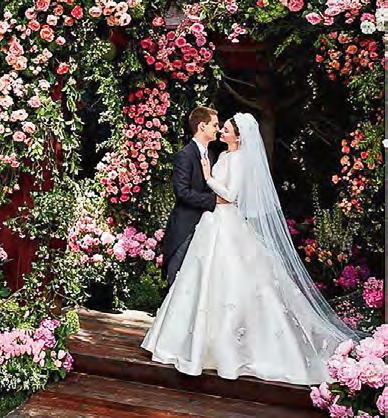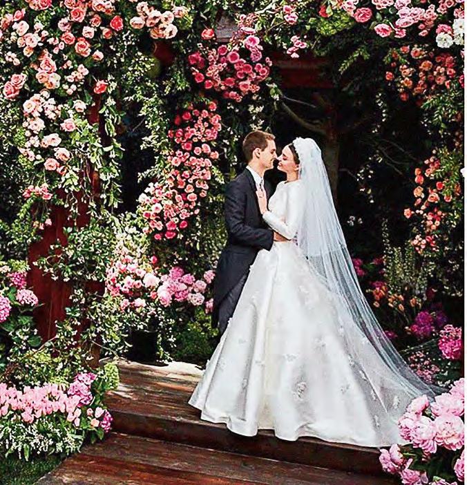 a través de diversos medios. La noticia de la boda fue transmitida a través de Snapchat, obviamente, pero los detalles de su vestido de novia Dior Couture, diseñado por Maria Grazia Chiuri, fueron dados a través del sitio de Vogue USA en una producción supervisada por la directora de la revista, Anna Wintour, y fotografiada por Patrick Demarchelier. El vestido – contrariamente a los atuendos que Miranda solía lucir en la pasarela de Victoria’s Secret– casi no dejó piel a la vista y fue un ejemplo de elegante decoro inspirado en el femenino y discreto vestido que Grace Kelly usó en su matrimonio con el príncipe Rainiero en 1956, diseñado por Helen Rose. “Gracias Maria Grazia Chiuri y @Dior por crear el vestido de novia de mis sueños”, escribió la modelo en su cuenta de Instagram, posteando una foto donde parecía una muñeca de cintura ultra entallada.