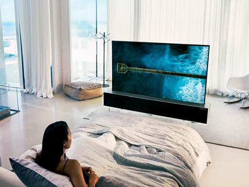 LG redefinió la próxima generación de televisores con el lanzamiento de la pantalla OLED Signature Oled TV R (modelo 65R9) enrollable. Esto representa que la pantalla de 65 pulgadas se pueden ocultar en su base y convivir con el diseño de interiores del lugar. Tiene una carcasa de aluminio cepillado hasta la cubierta de lana en las bocinas diseñadas por Kvadrat de Dinamarca.