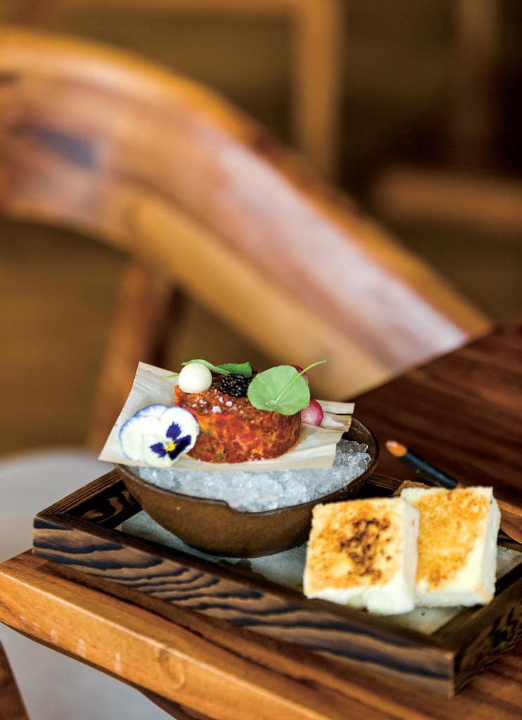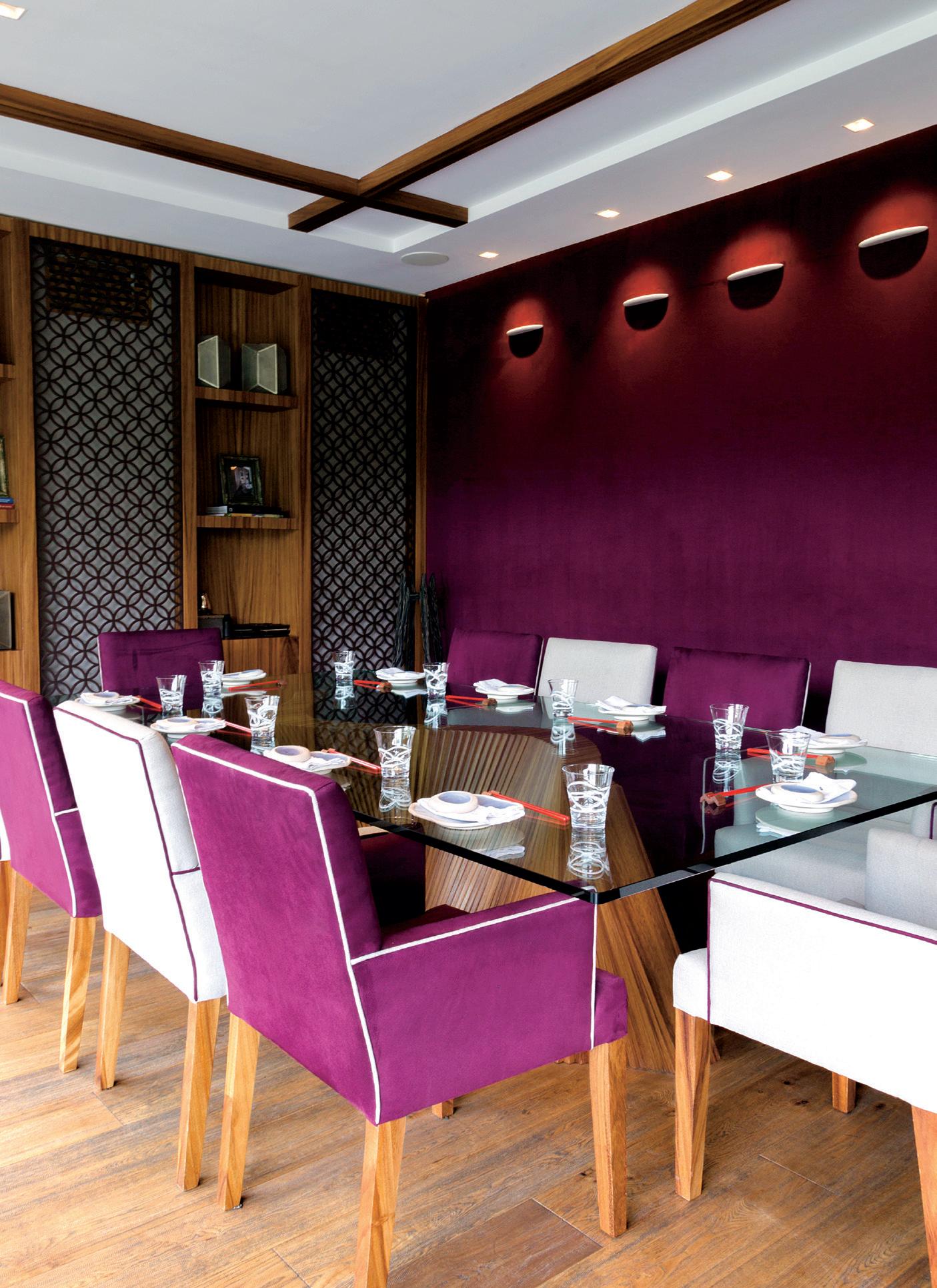 en el trato exclusivo a sus visitantes, ofreciendo un menú que incluye especialidades de bar de sushi, platillos japoneses modernos y platillos cocinados en una parrilla robata de carbón binchotan (carbón japonés).