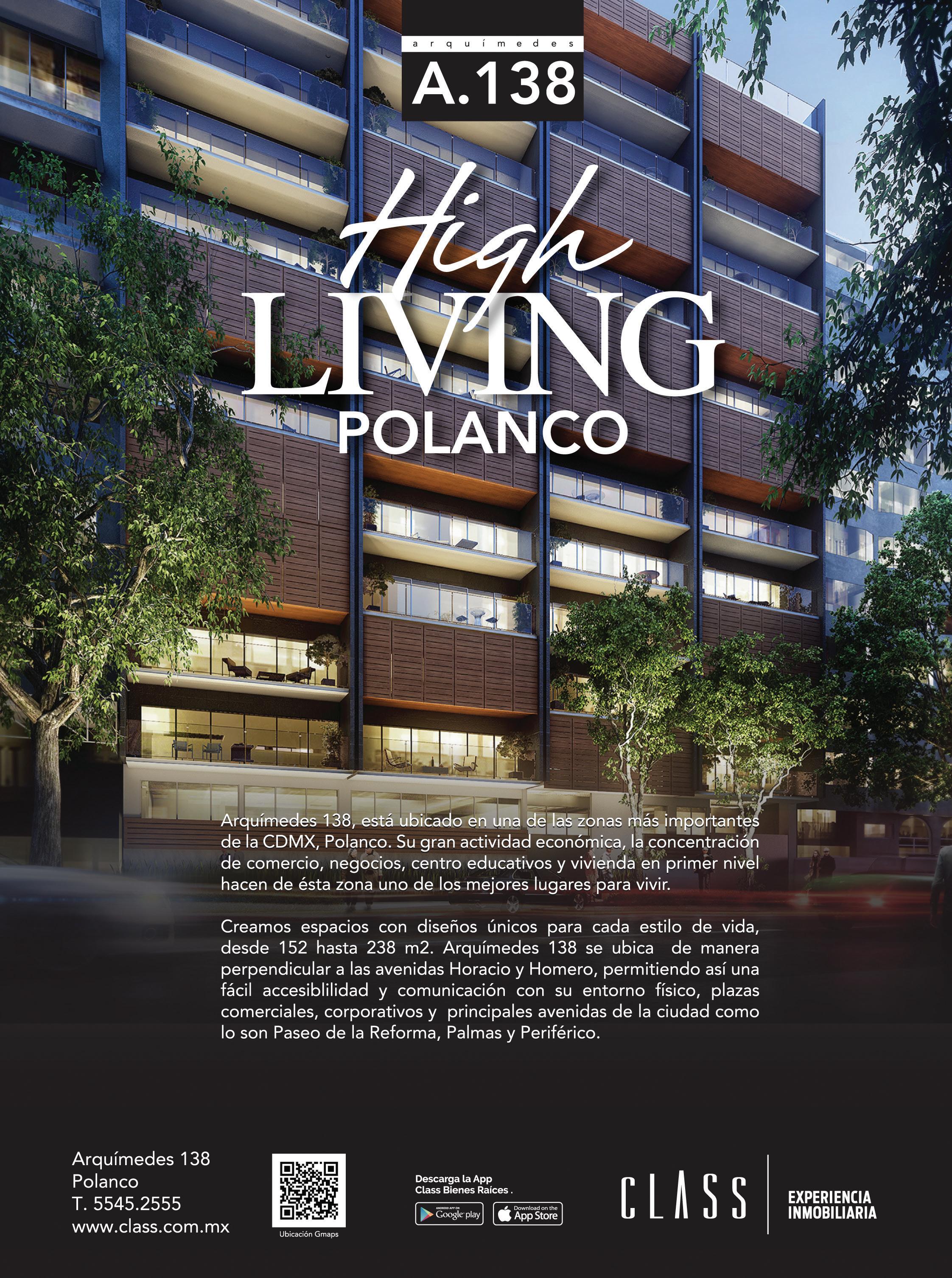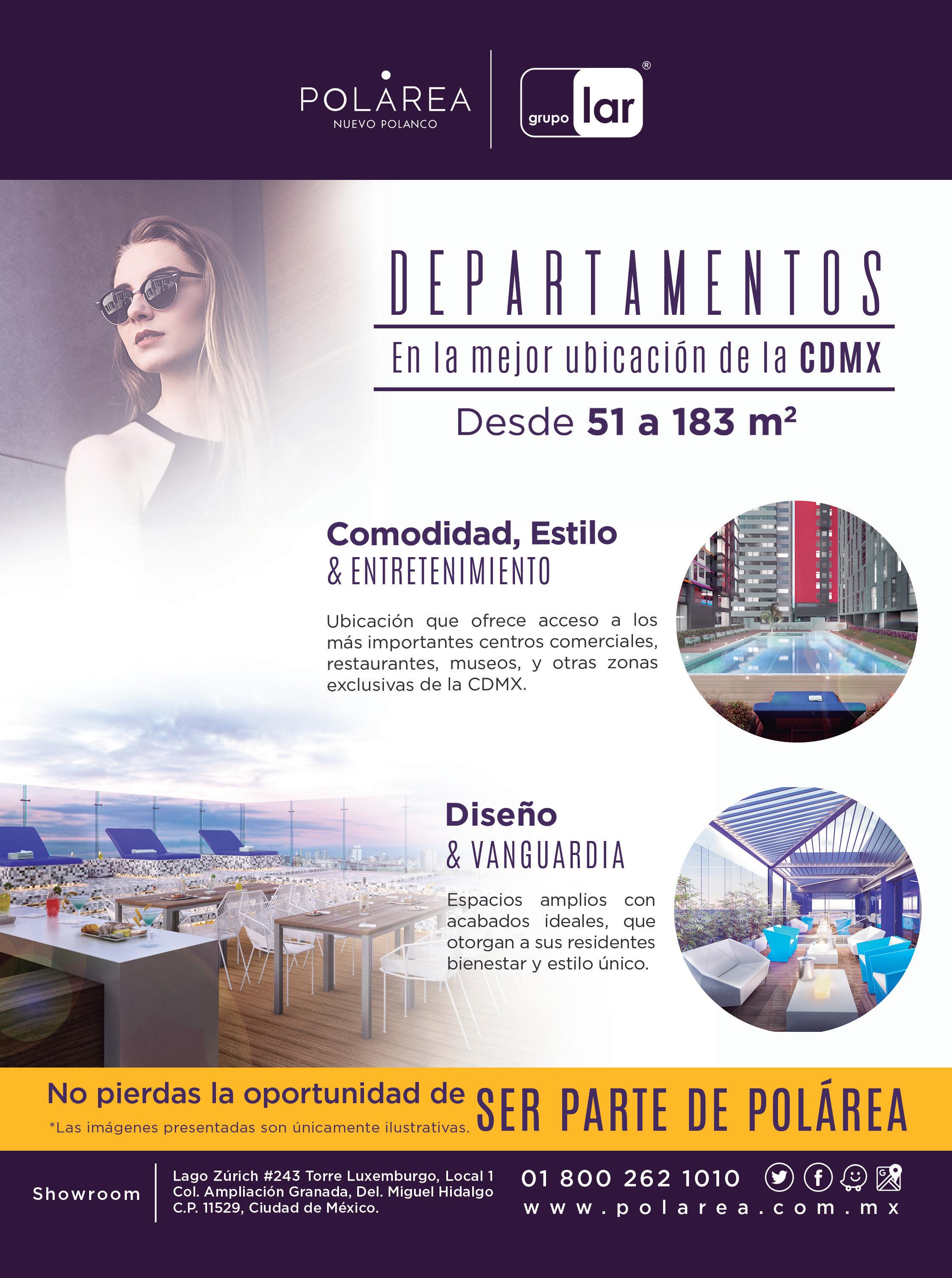 COLONOS POLANCO Año 1 • Número 34 • Marzo de 2018. Es una publicación mensual de Grupo Mundo Ejecutivo®; Editada y publicada por: Comercializadora Mundo Rewards S.A. de C.V., Oficinas Generales: Río Nazas No. 34 Planta Baja, Col. Cuauhtémoc, C.P. 06500, Delegación Cuauhtémoc. México, CDMX. Teléfono: 5002-9500. www.mundoejecutivo.com.mx Editor Responsable: Rosa Arlenne Muñoz Vilchis. Certificado de Reserva de Derechos al Uso Exclusivo número 04-2010-041612575700101. Certificado de Licitud de Título y Contenido 14925. Se imprime en los talleres de CICSA, con dirección en Avenida México Coyoacán núm 40, Col. Santa Cruz Atoyac, Delegación Benito Juárez, C.P. 03310 CDMX, 56287878 ext. 1741. Los artículos firmados son responsabilidad de sus autores y no reflejan necesariamente el punto de vista del Editor de la publicación o de Grupo Mundo Ejecutivo®.Queda estrictamente prohibida la reproducción total o parcial de los contenidos e imágenes de la publicación sin previa autorización de Comercializadora Mundo Rewards S.A. de C.V. ©.Comercializadora Mundo Rewards S.A. de C.V. investiga sobre la seriedad de sus anunciantes, pero no se responsabiliza con las ofertas relacionadas por los mismos.