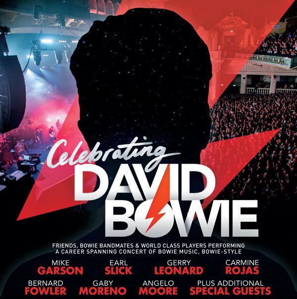 “Celebrating David Bowie” es el espectáculo que honra a uno de los máximos artistas del planeta, donde reúne a músicos amigos y colaboradores del duque blanco. Este show, que se gestó en Reino Unido, se encuentra de gira mundial y llegará a El Plaza Condesa en la Ciudad de México el próximo 1 de marzo. Esta gira de conciertos es parte de la conmemoración del primer aniversario de su partida y de los festejos por su cumpleaños número 70, donde participa una valiosa parte de sus músicos de estudio y de gira.