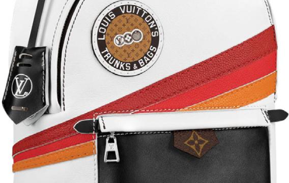 Esta reinterpretación de la mochila Palm Springs PM se presentó en la Colección Crucero 2020, en la que el legado viajero de la Maison se actualizó con nuevos destinos. El accesorio rinde homenaje al emblemático TWA Flight Center del aeropuerto JFK donde Nicolas Ghesquière llegó en su primer viaje a Nueva York. Las rayas coloridas y los parches LV contrastan con la lona Monogram y la piel blanca lisa para ofrecer un look moderno y deportivo.