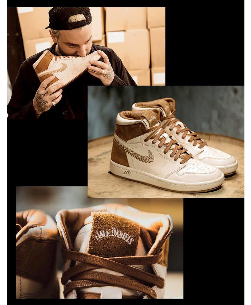 Dominic Ciambrone y Jack Daniel’s Old No.7 desarrollaron siete diseños originales basados en el particular proceso gota a gota detrás del whiskey. Grain es una combinación de pieles premium que incorporan detalles sutiles inspirados en el grano, como los reflejos color café de la cebada, bordados en la lateral que nos recuerda los Jordan Retro 1.