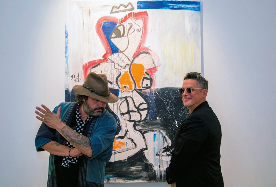 El año pasado expusimos una serie que hicimos juntos, él realizó los dibujos y yo los pinté. La exposición en Nueva York fue un exitazo, la mandamos a Madrid y nos hemos quedado sin cuadros, habrá que pintar algunos más. Para mí es un orgullo tener un amigo como Alejandro Sanz, me encanta su obra, me encanta lo que hace y lo quiero traer conmigo a todos los sitios.