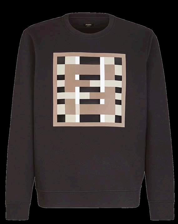 Sudadera de manga larga y cuello vuelto en corte regular. Tiene confección en punto de algodón negro. El motivo geométrico Fendi está compuesto de Lycra termosellada sobre una base de organza con acabado en aplicación Framis en tonos marrones.