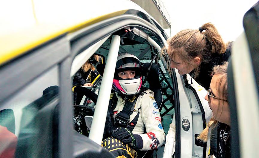 más cuidadosas y se enfocan más en los detalles”, afirma Lisa Mohr. “Por eso las cosas pueden tardar un poco más al principio”. Pero eso cambia rápidamente cuando se encuentra el ritmo adecuado. “Los chicos siempre nos guiñan los ojos al principio”, comenta Jasmin Preisig, de 26 años, que ha sido piloto en muchas carreras y la solicitan muchos para autógrafos en el pit 23. “Pero cuando manejas más rápido que ellos, se indignan y no te vuelven a hablar”.