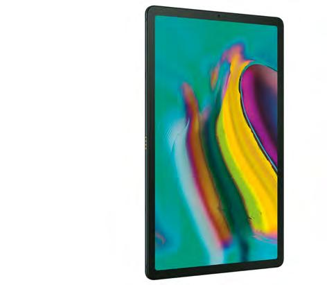 S5e es la tableta de Samsung con un cuerpo metálico elegante y delgado, con un grosor de 5.5 mm, y un peso ultraliviano de 400 gramos, que la convierte en la tableta más ligera de la marca. Su icónica pantalla Super AMOLED (16:10), sin botón de inicio visible, da como resultado una imagen minimalista y estilizada. Con la incorporación de una batería con duración prolongada de 7,040 mAh, alcanza hasta 14.5 horas. Para aumentar su productividad está equipada con una memoria de 64 GB con opción a expandirse para obtener hasta 512 GB con una tarjeta microSD.