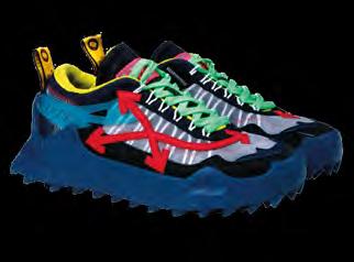 ONEY-1000 son los nuevos modelos de tenis de la marca Off White en su versión azul con flechas rojas en el lateral. Tienen suela de goma esculpida coloreada en azul, cierre de cordones verde, punta redonda y tiras industriales amarillas en el cuello del talón. Su diseño deportivo con materiales 65% Poliéster y 35% Cuero.