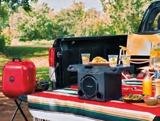 Con un modo de fiesta en exteriores que propaga más el sonido, la GTK-PG10 es ideal para utilizarla al aire libre, e incluso cuenta con un panel superior a prueba de salpicaduras para bebidas.