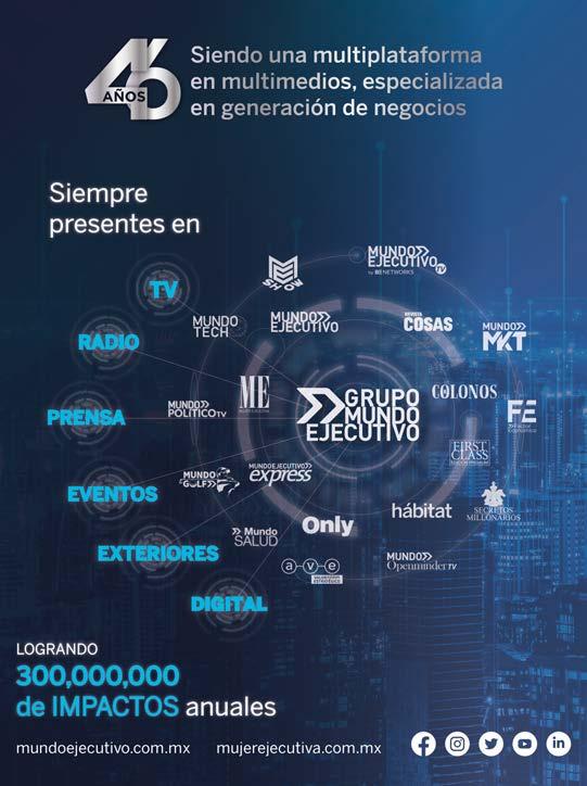 Asistente Editorial: María Eugenia Mata Producción y Control de Calidad: Aarón Rangel Responsable de suscripciones: Irma Ruiz irma.ruiz@mundoejecutivo.com.mx, Martha Santos martha.santos@mundoejecutivo.com..mx Tel. 55 5002 9513