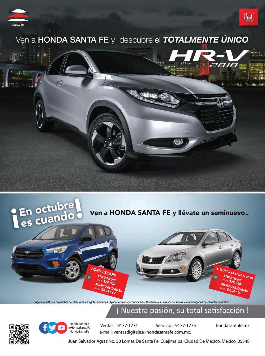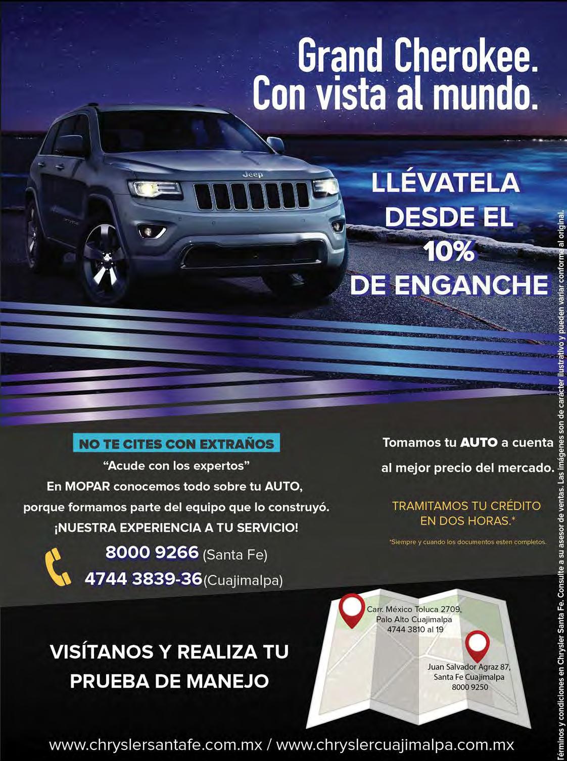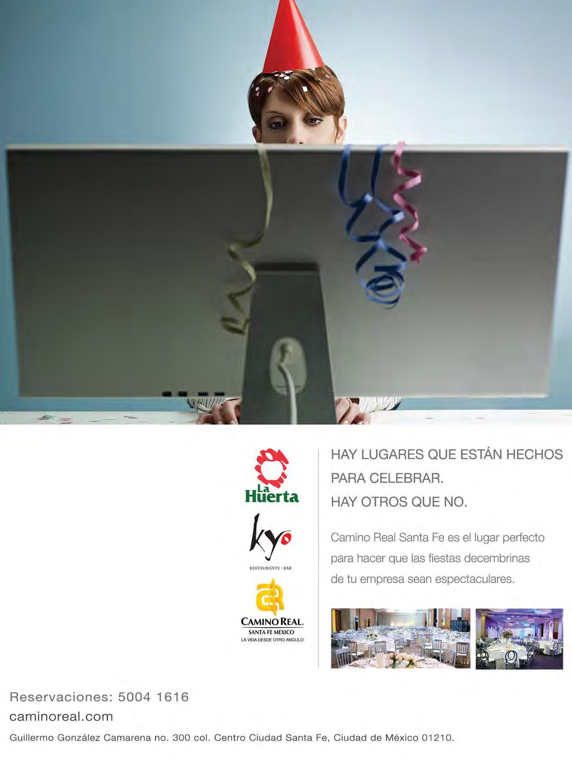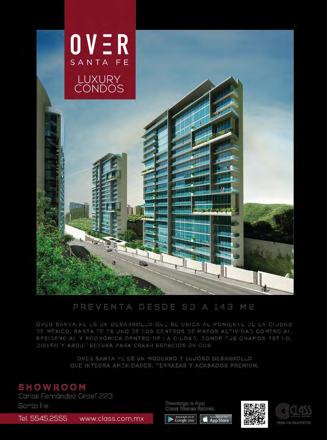 COLONOS SANTA FE Año 8 • Número 82 • Noviembre de 2017. Es una publicación mensual de Grupo Mundo Ejecutivo®; Editada y publicada por: Comercializadora Mundo Rewards S.A. de C.V., Oficinas Generales: Río Nazas No. 34 Planta Baja, Col. Cuauhtémoc, C.P. 06500, Delegación Cuauhtémoc. México, CDMX. Teléfono: 5002-9500. www.mundoejecutivo.com.mx Editor Responsable: Rosa Arlenne Muñoz Vilchis. Certificado de Reserva de Derechos al Uso Exclusivo número 04-2010041612575700-101. Certificado de Licitud de Título y Contenido 14925. Se imprime en los talleres de CICSA, con dirección en Avenida México Coyoacán núm 40, Col. Santa Cruz Atoyac, Delegación Benito Juárez, C.P. 03310 CDMX, 56287878 ext. 1741. Los artículos firmados son responsabilidad de sus autores y no reflejan necesariamente el punto de vista del Editor de la publicación o de Grupo Mundo Ejecutivo®.Queda estrictamente prohibida la reproducción total o parcial de los contenidos e imágenes de la publicación sin previa autorización de Comercializadora Mundo Rewards S.A. de C.V. ©.Comercializadora Mundo Rewards S.A. de C.V. investiga sobre la seriedad de sus anunciantes, pero no se responsabiliza con las ofertas relacionadas por los mismos.