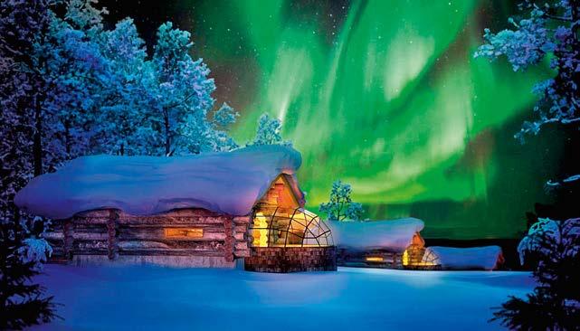 Este hotel se vuelve el sitio perfecto para gozar de un increíble viaje en familia ya que cuenta con diversas modalidades para hospedarse, desde iglús de nieve, de cristal, cabañas y suites. Uno de los atractivos de esta propiedad es su privilegiada ubicación, cerca de la Villa de Santa Claus, convirtiéndolo en el lugar ideal para familias, ya que los niños pueden visitar la fábrica de juguetes y vivir la magia de la temporada navideña, además de disfrutar de los hermosos paisajes rodeados de auroras boreales.