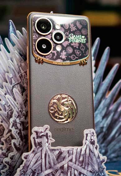 Para los fanáticos de Westeros, Realme ha creado algo más que un dispositivo de edición limitada. La experiencia comienza con un unboxing cinematográfico: una caja diseñada como cofre de huevos de dragón que incluye un Trono de Hierro en miniatura como soporte, mapa de Westeros, y tarjetas coleccionables de las casas nobles. La verdadera magia está en el panel posterior termocromático de cuero negro que se transforma en rojo Targaryen cuando supera los 44°C. Literalmente despiertas al dragón con cada uso intensivo. El escudo dorado tridimensional de la Casa Targaryen, las garras de dragón esculpidas en el módulo de cámara, y frases icónicas grabadas completan esta obra de arte funcional.