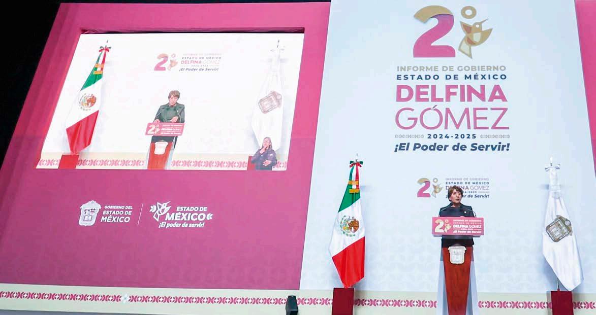 La gobernadora del estado de México, Delfina Gómez Álvarez, cumplió sus primeros dos años de Gobierno. Entregó dicho informa, de manera personal, al Congreso del estado de México, posteriormente encabezó un acto en el Teatro Morelos, de Toluca, la capital, escenario de diversos ex gobernadores priistas desde donde se anunciaron y defendieron proyectos presidencialistas. En esta ocasión, la mandataria mexiquense recibió a invitados especiales como la gobernadora de Guerrero, Evelyn Salgado Pineda; la jefa de Gobierno de la CDMX, Clara Brugada Molina, a los ex gobernadores mexiquenses Arturo Montiel Rojas y Eruviel Ávila Villegas, además de representantes empresariales, entre ellos Paco Cervantes, presidente nacional del Consejo Coordinador Empresarial.
