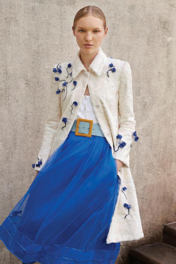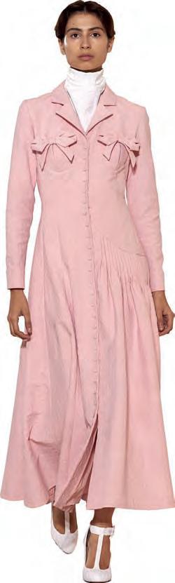 Los símbolos de feminidad se recrean en el outfit a partir de detalles. La selección del atuendo, el color y las texturas establecen un código visual propio.