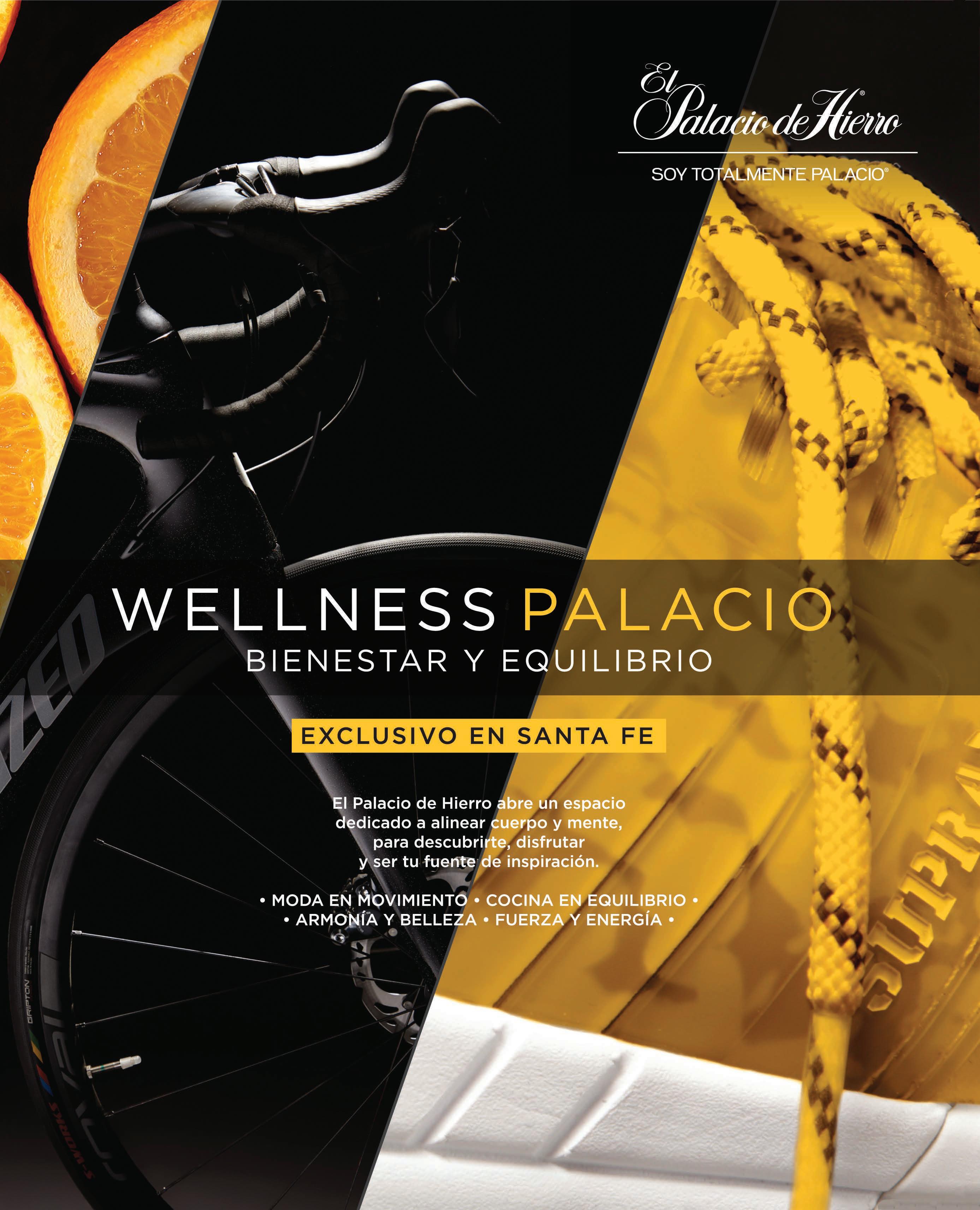 Recientemente El Palacio de Hierro lanzó su nuevo concepto Wellness Palacio, un espacio diseñado especialmente para los amantes del fitness y del buen comer , ya que cuenta con entretenimiento y experiencias múltiples además de una exclusiva oferta de marcas de moda y firmas especializadas en el ramo del deporte y comida orgánica. Ubicado en el sótano de El Palacio de Hierro Santa Fe, es un área que contempla todos los ámbitos dedicados a un estilo de vida de bienestar. Es la apuesta de la departamental para que los clientes asiduos a Centro Santa Fe luzcan bien por dentro y fuera y abandonen la rutina para seguir su propio ritmo.