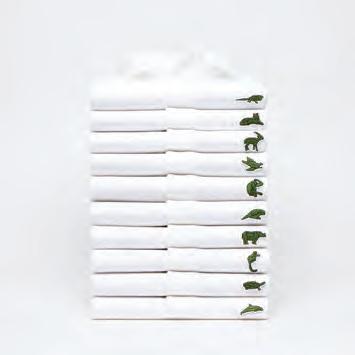 Lacoste apoya a la asociación SOS de la UICN para combatir la extinción de diez de las especies más amenazadas en el mundo, con polos de edición limitada. En ellas, el logotipo da paso a cada uno de los diez animales.