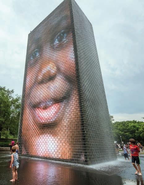 No te puede faltar la foto al pie de Cloud Gate en la plaza AT&T, una de las esculturas icónicas del parque y de la ciudad, una gigantesca gota de acero inoxidable de 20 metros de ancho por 10 m de alto, que refleja el paisaje urbano más característico de Chicago. La obra fue creada por el artista indo-británico Anish Kapoor y es un punto de atención de todo cazador de fotos de lugares emblemáticos del mundo. Visita la fuente Crown, obra diseñada por el artista catalán Jaume Plensa. Son dos torres de ladrillos en las que fluye el agua de la fuente y en los que se pueden usar proyecciones, en las que aparecen caras de las diversas personas que viven en Chicago.