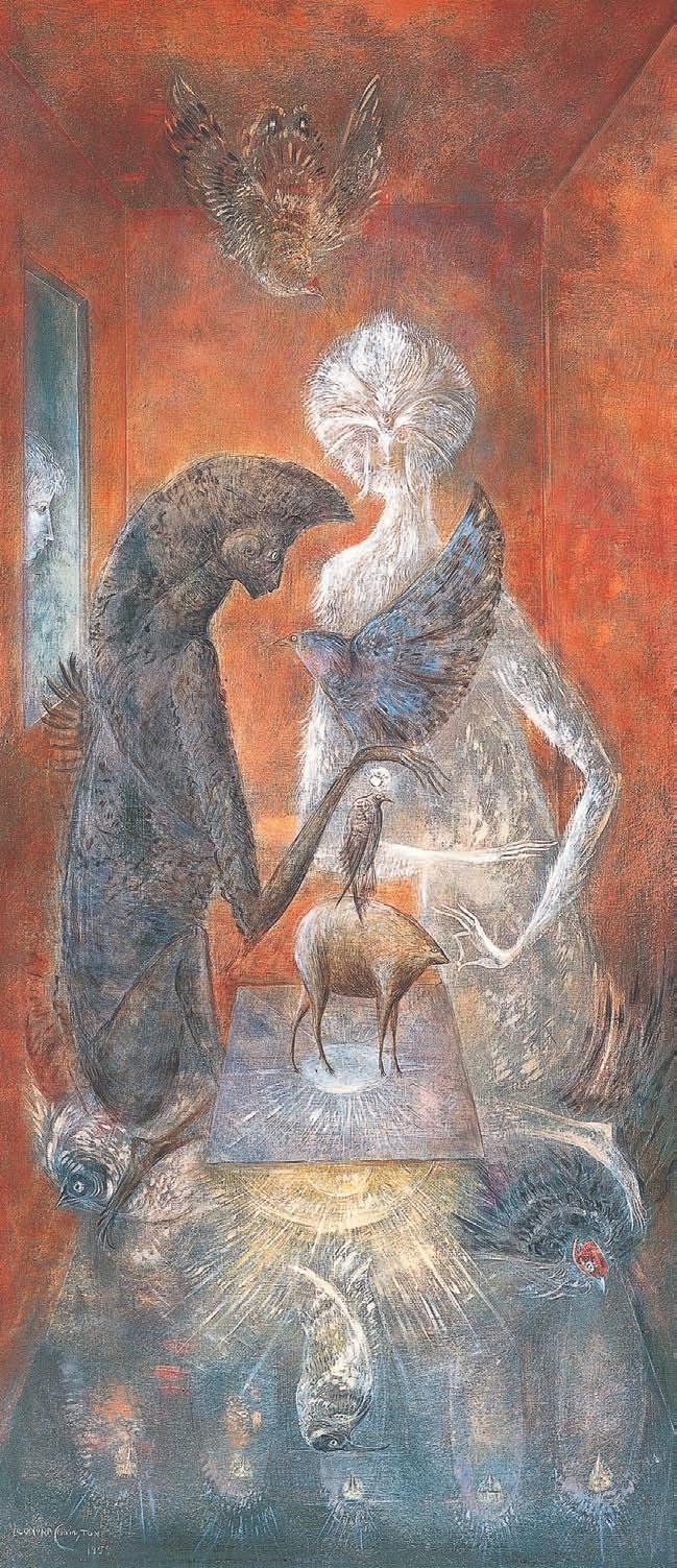 balíes, gatos, peces, serpientes y hasta el cocodrilo, un animal por el que no sentía atracción hasta que lo convirtió en bronce. Este tránsito refleja otra de las claves para entender el universo de Leonora: la alquimia. No es desconocido que, dentro de la práctica surrealista, se concediera importancia a otros mundos fuera de la lógica y lo real: el inconsciente, los sueños y su interpretación, las culturas antiguas, los mitos, la fantasía, la magia, las tradiciones orientales y el ocultismo.
