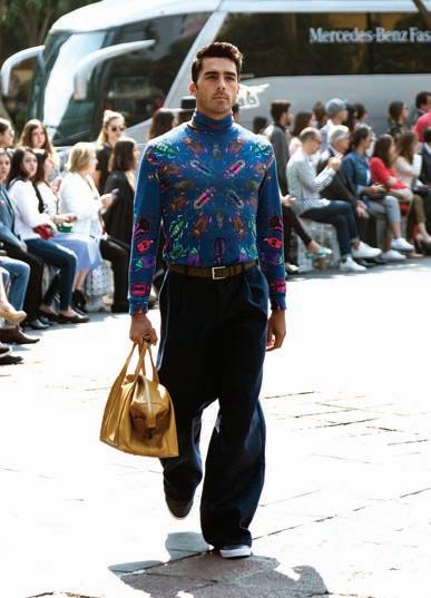 Pineda Covalin presenta una colaboración con cinco artistas mexicanos para rendir homenaje al arte contemporáneo: Lourdes Almeida, Chu Huiini, Japane, Fernando Sama y Ricardo Alemán. Esta vez vimos más que sedas, varios pantalones amplios, crop tops, piezas para caballero, vestidos y toques deportivos multicolores con prints de escarabajos, la colección “Simbiosis del Arte” no pudo tener mejor sede que la Fuente de Cibeles en la Ciudad de México.