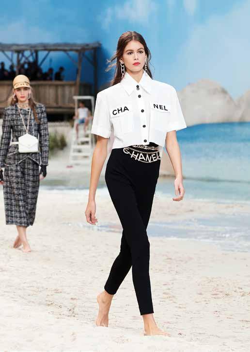Tanto para el día como para la noche, los vestidos de chaleco aparecen en tweed blanco envuelto en rayas o bordados y lentejuelas. Total libertad y sofisticación son los códigos del estilo predominante creado por Karl Lagerfeld.