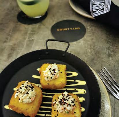 dimento de camarón por fuera y camarón empanizado al centro, o bien el Inn roll, con cangrejo y queso Philadelphia que está envuelto en pepino y lleva salsa Tampico con un pedazo de ca marón empanizado encima, sim plemente delicioso. Si se apetece un postre, lo mejor es el tempura helado, un exquisito dulce que lo puedes acompañar con choco late, fresa líquida o cajeta, quizá se te apetezca algo fresco como helado de té verde y brownie.