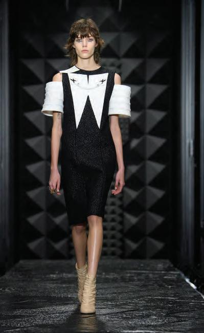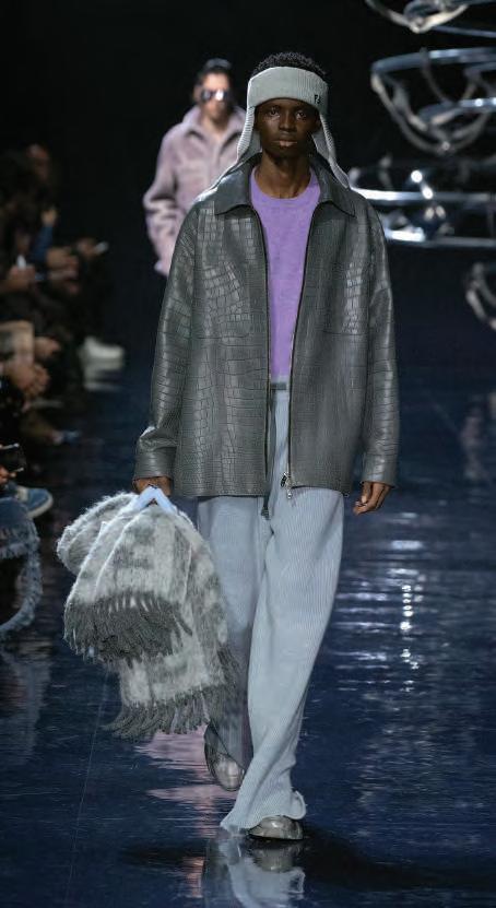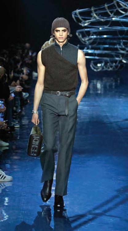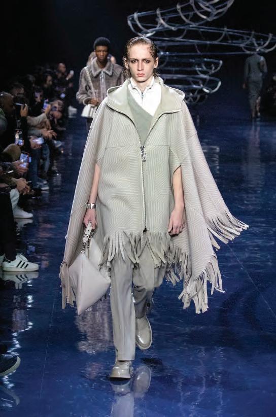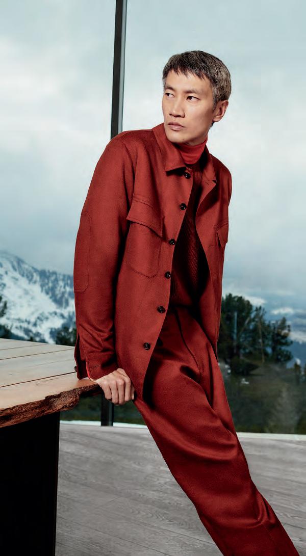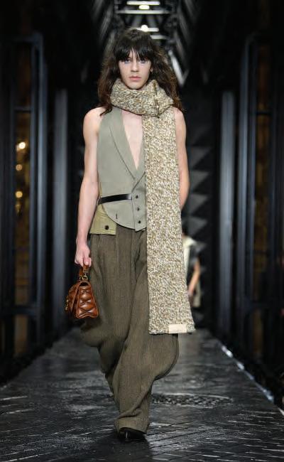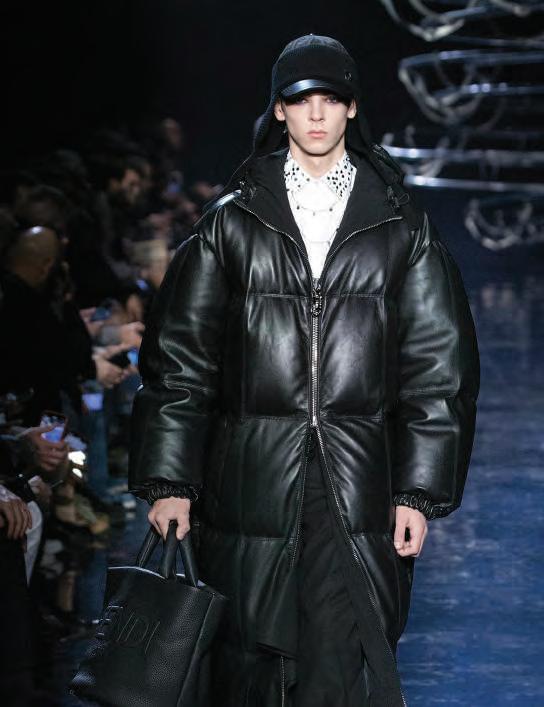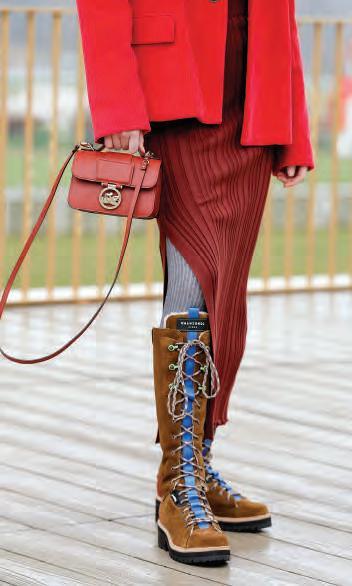 LOS TONOS CÁLIDOS – ciruela, maíz, caoba – o los estampados de camuflaje complementan las piezas clave chic y deportivas: chamarras, chalecos y blusones de piel de oveja, parkas estructuradas con paneles color block o chamarras con cuello alzado en cuero o franela acolchada, pantalones cargo, botas altas en color negro o tabaco con agujetas contrastadas para un look invernal y aventurero, que puede completarse con una gorra de béisbol de pana aterciopelada.