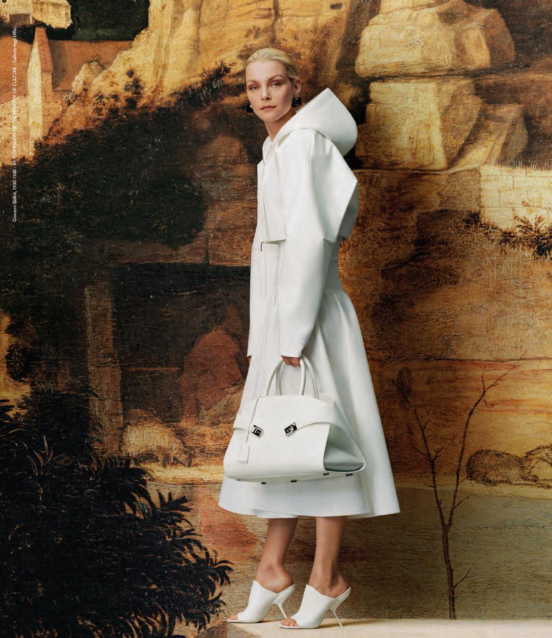 Ferragamo colaboró con Gallerie degli Uffizi en la visión del director creativo Maximilian Davis para la marca, utilizando obras de arte conocidas de Bellini, Veronese y Botticelli, de los siglos XV y XVI, como escenarios para la campaña Fall-Winter 23.
