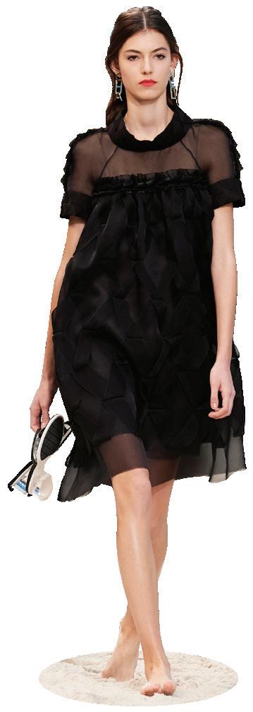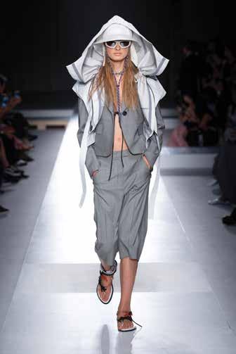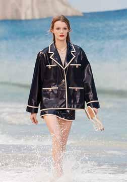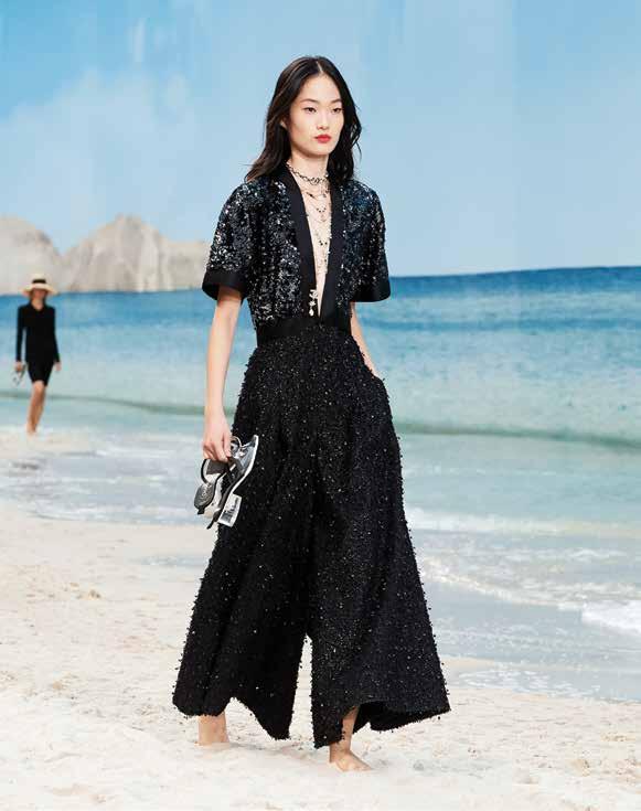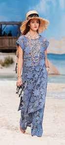 Se suma al look las gorras de doble visera y sombreros de ala ancha en paja con flecos, junto con capas, colgantes y collares de cuentas, mientras que las pulseras de brazalete XXL se multiplican. Se adicionan mules y bolsos de tweed y de playa.