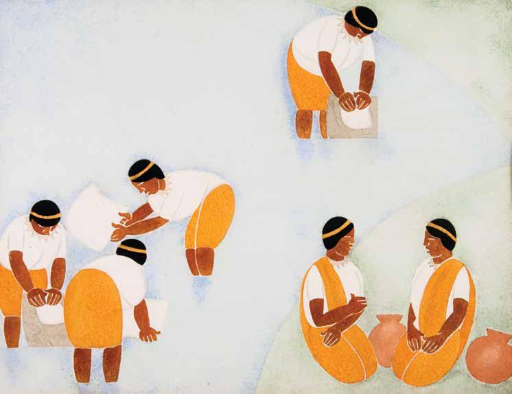 genas, predominantemente mayas. Es el reconocimiento de su origen: “Soy guatemalteco, una mezcla de español e indígena. Soy músico pero más pintor”. Un sucedáneo de realidades estallan en su pintura: no había oportunidades para sobrevivir como artista visual; el país entraba en depresión económica por la mala administración gubernamental, los terremotos de diciembre de 1917 y enero de 1918 alejaban la esperanza y las sucesivas epidemias de gripe española, fiebre tifoidea y otros males asolaron a la población. Después de la frontera estaba México, quizá habría oportunidades para el arte, para vivir.