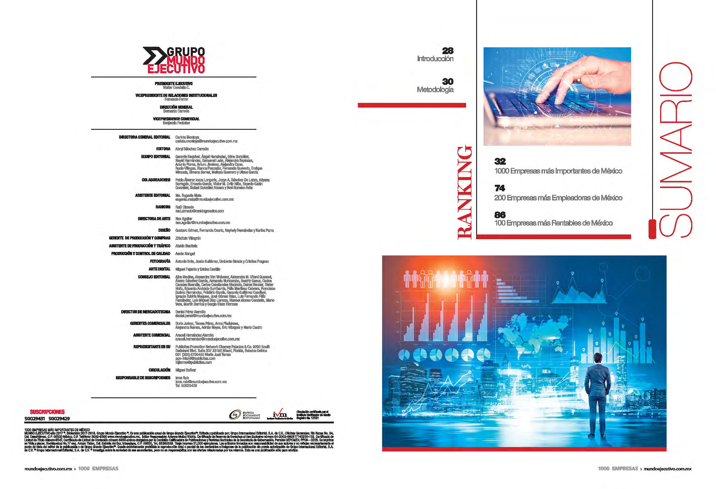 En Grupo Mundo Ejecutivo festejamos 41 años de ser un referente en la industria editorial de negocios y más 20 construyendo rankings de interés para todos aquellos que tienen injerencia en la economía nacional, hemos construido una voz a base de información veraz. Nuestro equipo dedica todo el año para preparar esta edición especial con una metodología incuestionable en la que se enlistan a las mil empresas más importantes de nuestro país y cómo se han desplazado en la lista respecto al año anterior. Este es un ejemplar de consulta y coleccionable.