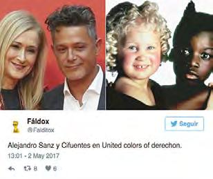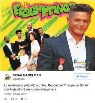 Alejandro Sanz recibió la Medalla de Oro de la Comunidad de Madrid y posó junto a la presidenta de la Comunidad, Cristina Cifuentes. Lo que parecía una simple foto protocolaria se convirtió en el meme protagónico de las redes. Y es que el bronceado que lució el artista de 48 años dio mucho juego para los usuarios de Twitter, que no tardaron en mofarse del madrileño. Le pusieron junto al reparto de serie como “El Príncipe del rap” y fue comparado con Donald Trump por su tono anaranjado.