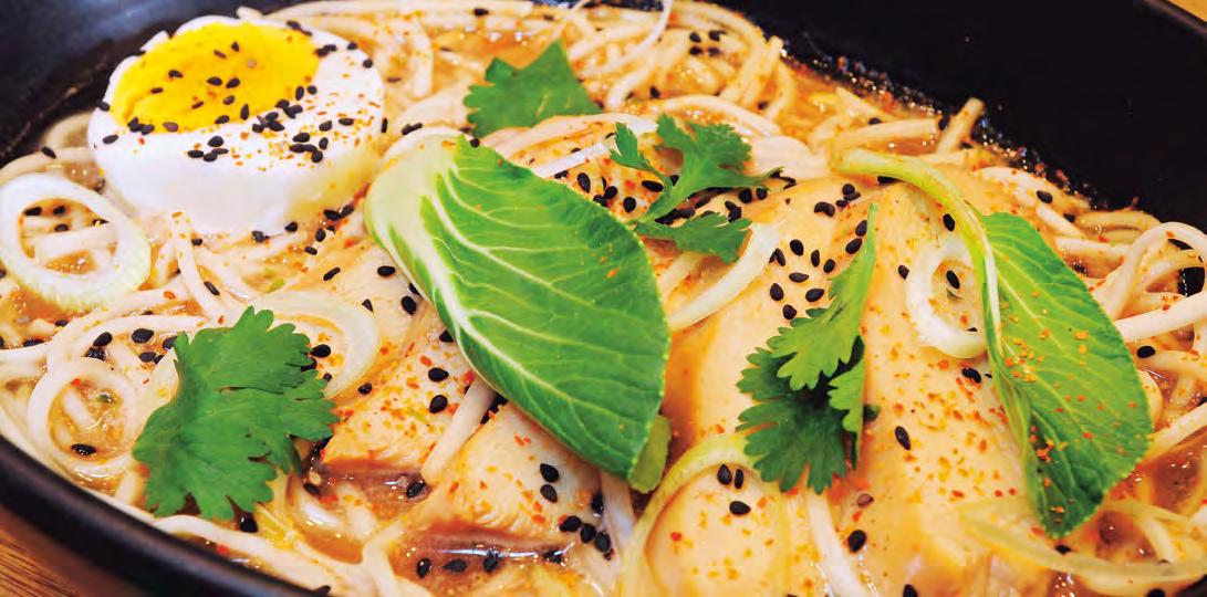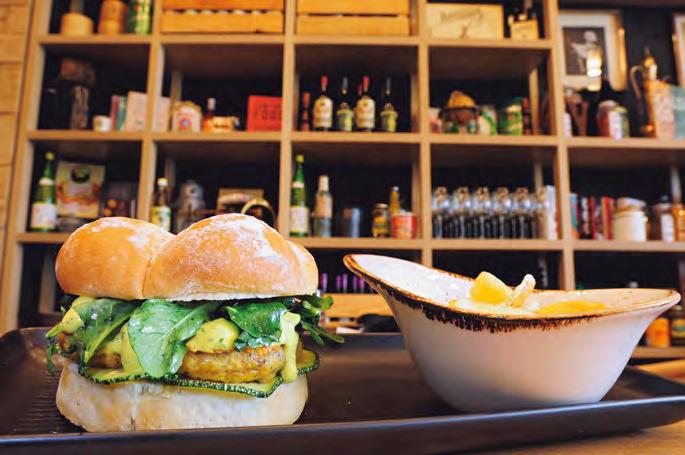 DIVERTIDA Y DESENFADADA, como el famoso Pac-Man, personaje de videojuegos de los ochenta que cobra vida y se transforma en una deliciosa galleta de mantequilla y almendra, rellena de mousse helado de coco; o el ramen de pollo, ideal para los amantes de las sopas y los sabores asiáticos. Ya sea que quieras pequeños bocados, entradas frías y/o calientes, o un plato fuerte como la hamburguesa de pollo (carne sazonada con las especies más representativas de la concina hindú, en pan rústico mediterráneo), en Canalla Bistro seguro encuentras el remedio al mayor de tus antojos gastronómicos. Otra de las recomendaciones es el sándwich de pato, crujiente por donde lo veas, cocinado en su punto para que no pierda las propiedades ni el sabor. Si eres adicto al chocolate, prueba “la bomba de tres chocolates”, combinación de chocolate blanco, muffin y mousse de chocolate.