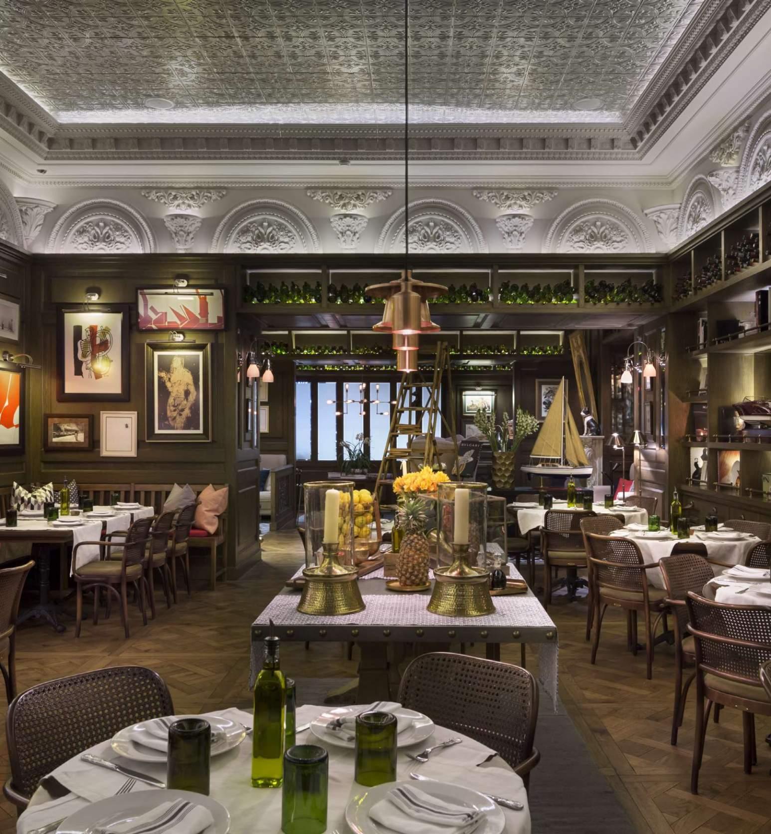 La arquitectura del restaurante muestra un ambiente acogedor y sofisticado con un estilo moderno y elegante complementado con acentos clásicos. Los detalles contienen contrastes atrevidos, cálidos y literarios.