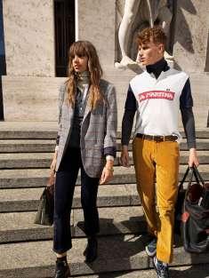 Los estilos contrastantes dominan la temporada; femenino se combina con cortes masculinos, opulentos con estilos minimalistas y ropa de calle con elegancia. Las chaquetas Puffa se combinan con faldas de patchwork plisadas y fluidas.