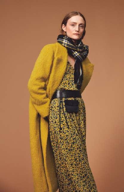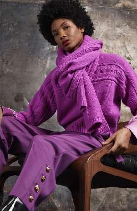 Se moderniza con toques del verde militar suave mezclado con el estampado Peony, o con un guiño a las telas de estilo militar como el fieltro, pero se traduce naturalmente en una versión de lujo de mano suave. El color está en abundancia desde el clásico Red Lacquer y Cobalt Blues hasta los fuertes pasteles de Berry y Dusty Blues, que finalizan la temporada en una versión moderna de un clásico en blanco y negro con infusiones violetas fuertes con Acid Yellow.
