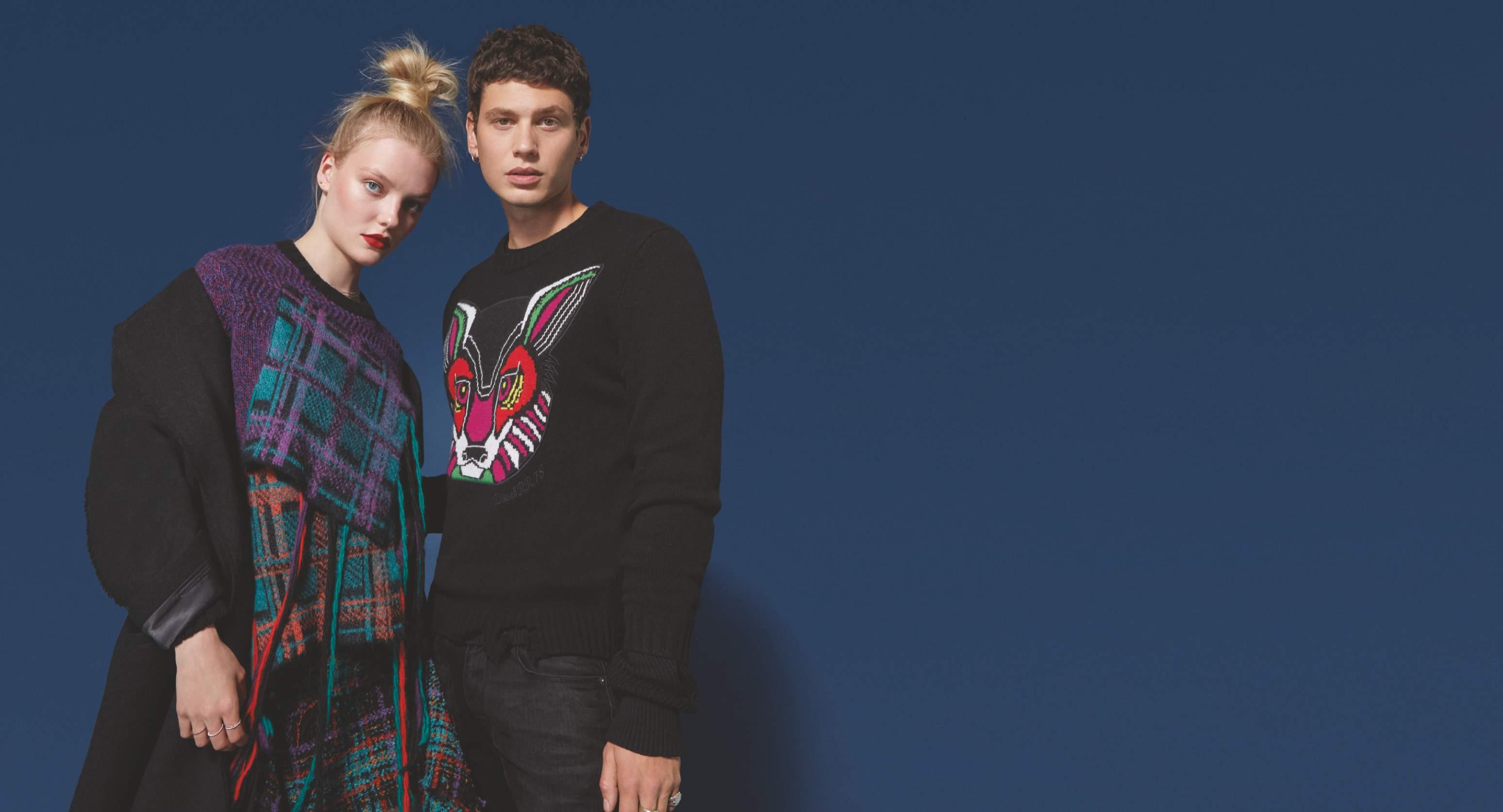 Toda la colección desde suéteres hasta pantalones, camisetas, chaquetas, calzado, bufandas y sombreros, se caracteriza y envuelve por referencias a los colores del arcoíris.